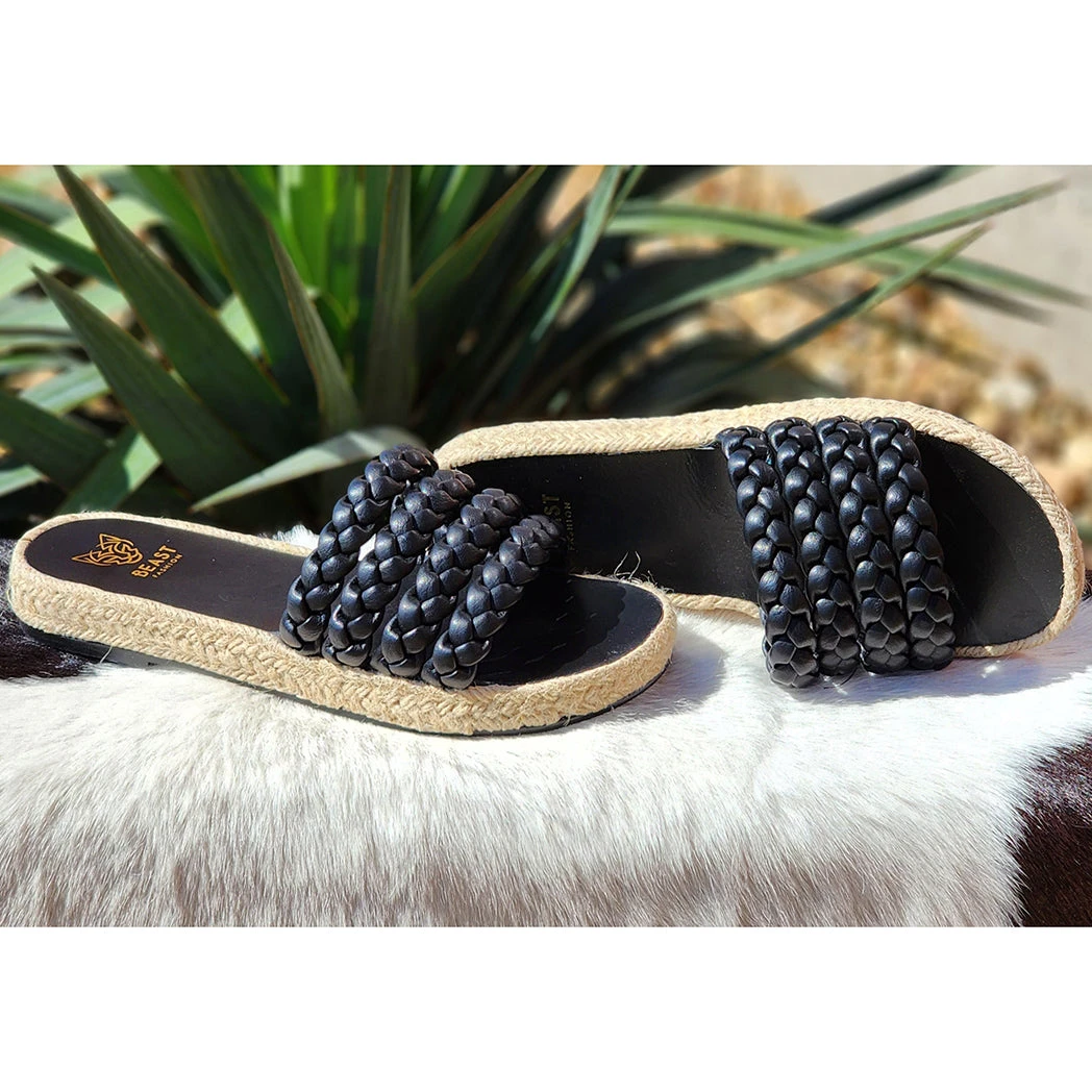 These super cute black braded slides have so much style and and character. Sure to add just the right touch to any summer outfit.