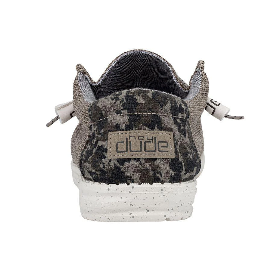 Check out this fun Sand Dune colored Hey Dude with a little camouflage on the back. This low-top moc is breathable with maximum comfort for all day wear. Features the no-tie elastic laces and patented UltraLIGHT outsole.