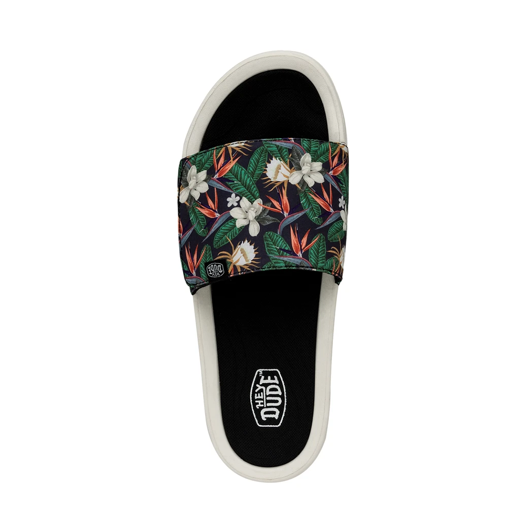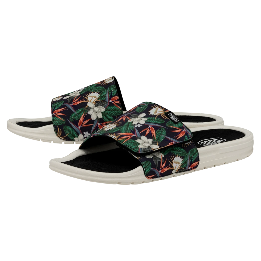It’s time for some sunshine with these Hey Dude Phoenix Tropical Birds of Paradise Slides! They feature a cotton upper strap that is designed for pure comfort. It also Features a leather-lined foot bed and a lightweight outsole, which makes this slide comfy to for all day wear. Perfect for the beach, lake, or your next bbq, we know you will want to keep your feet up in these all summer long!