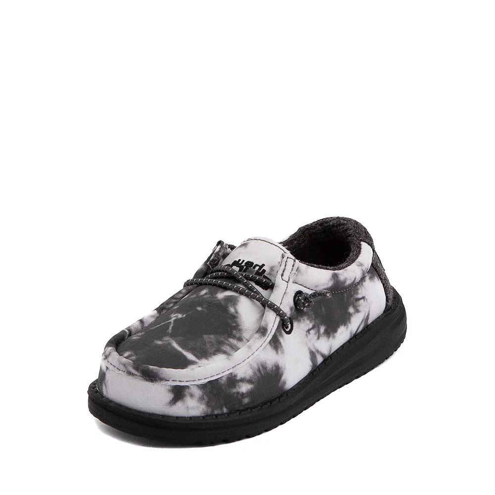 Let your little one be comfortable and look cute in these fun black and white tie dyed toddler Hey Dudes!