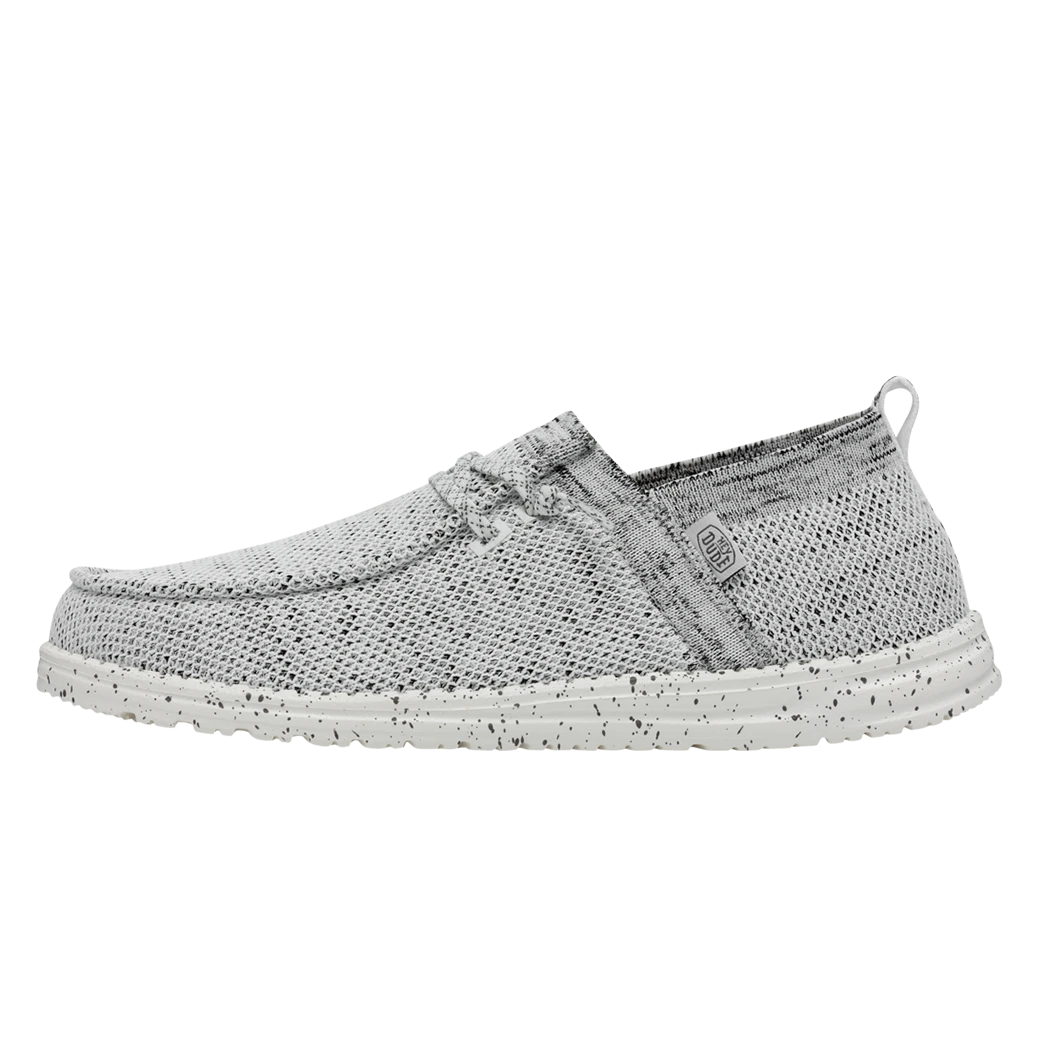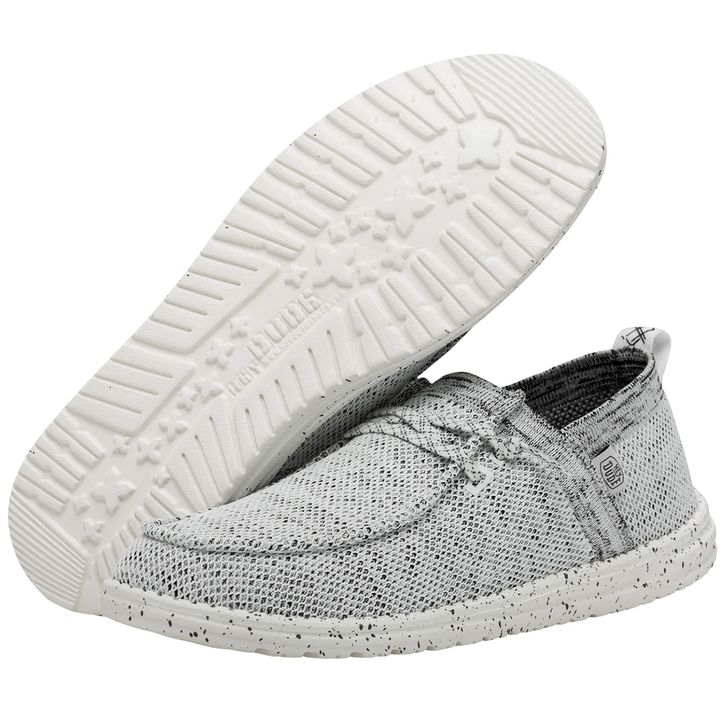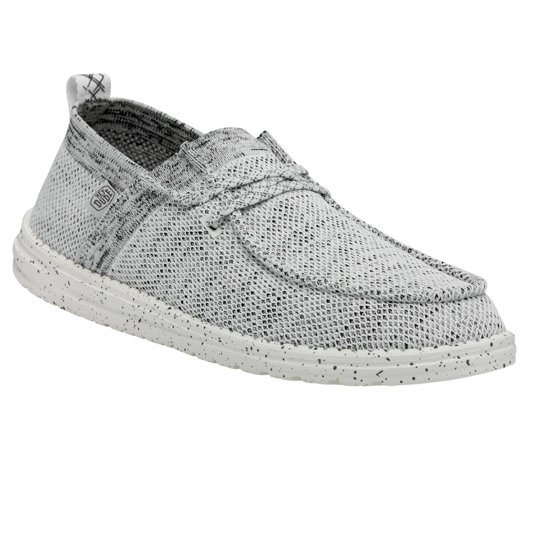 They Hey Dude Wally Halo Stone White shoe, utilizes recycled fibers, to give you a soft and breathable feel with all day comfort. The Halo features the easy-on system with cotton laces and an ultralight outsole. Great for the lake or beach these shoes dry out fast and keep a sock like fit to your foot!