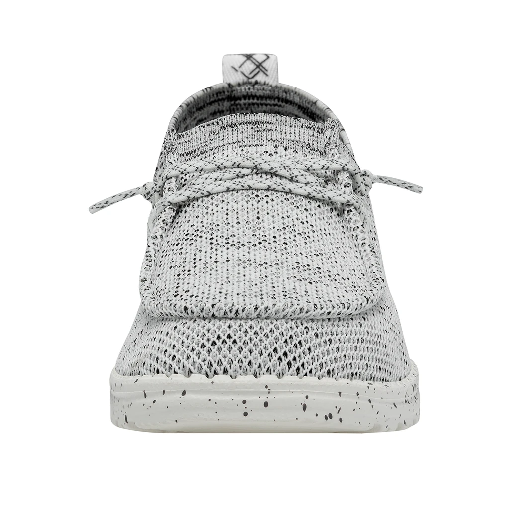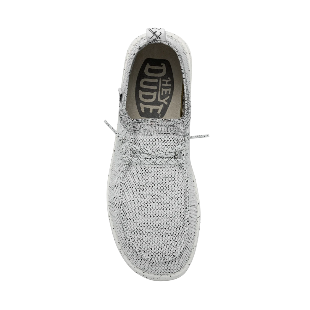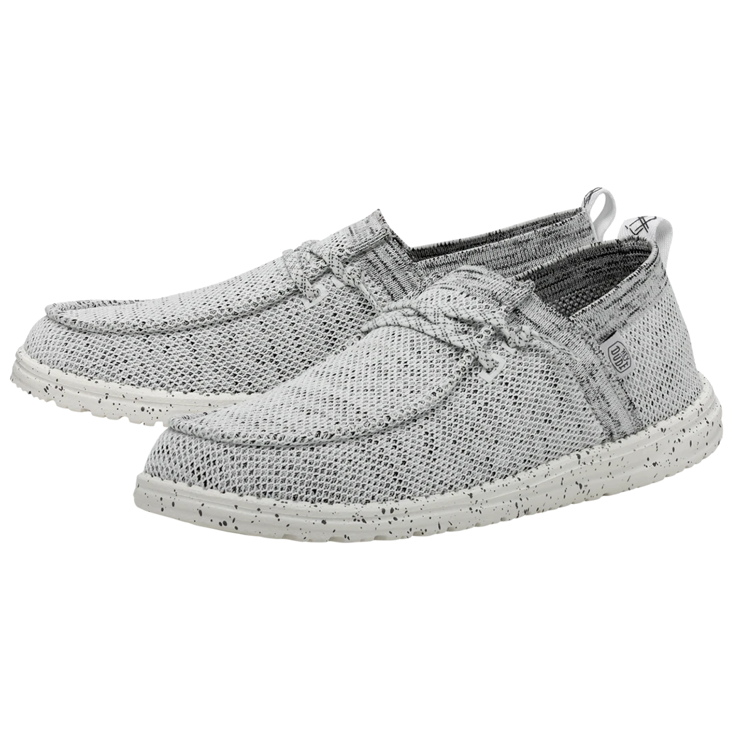 They Hey Dude Wally Halo Stone White shoe, utilizes recycled fibers, to give you a soft and breathable feel with all day comfort. The Halo features the easy-on system with cotton laces and an ultralight outsole. Great for the lake or beach these shoes dry out fast and keep a sock like fit to your foot!