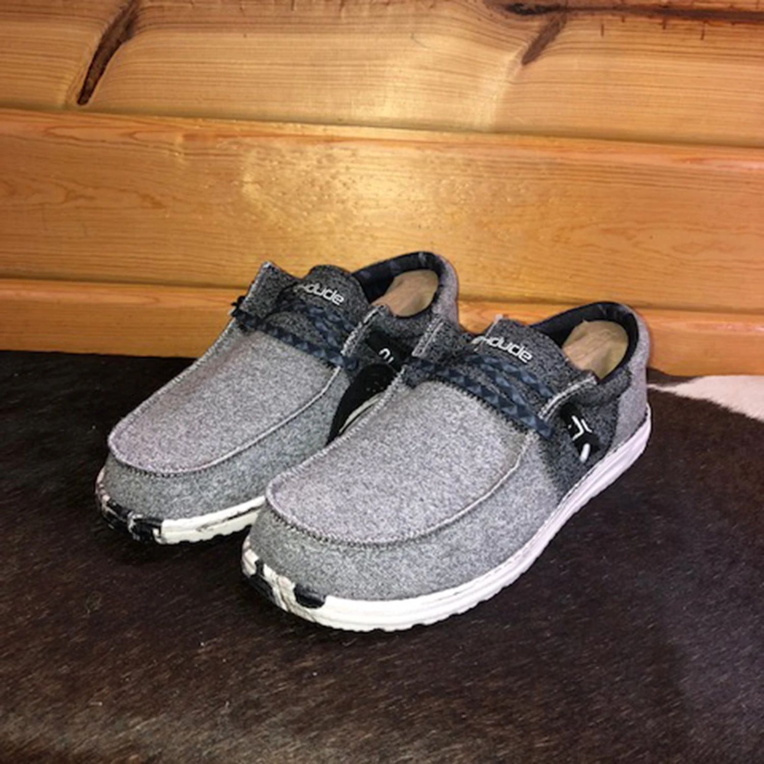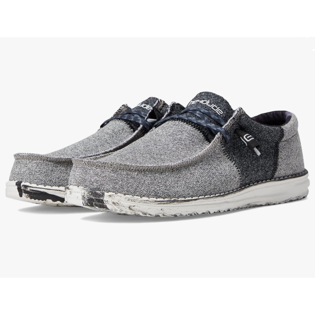The Hey Dude Wally collection introduces our most popular low-top moc. A breathable chambray-blend upper and lined with a soft, cotton lining for simple strides. Featuring an easy-on system with elastic laces, an ultralight outsole and a cushioned ankle collar for all-day comfort and wear.