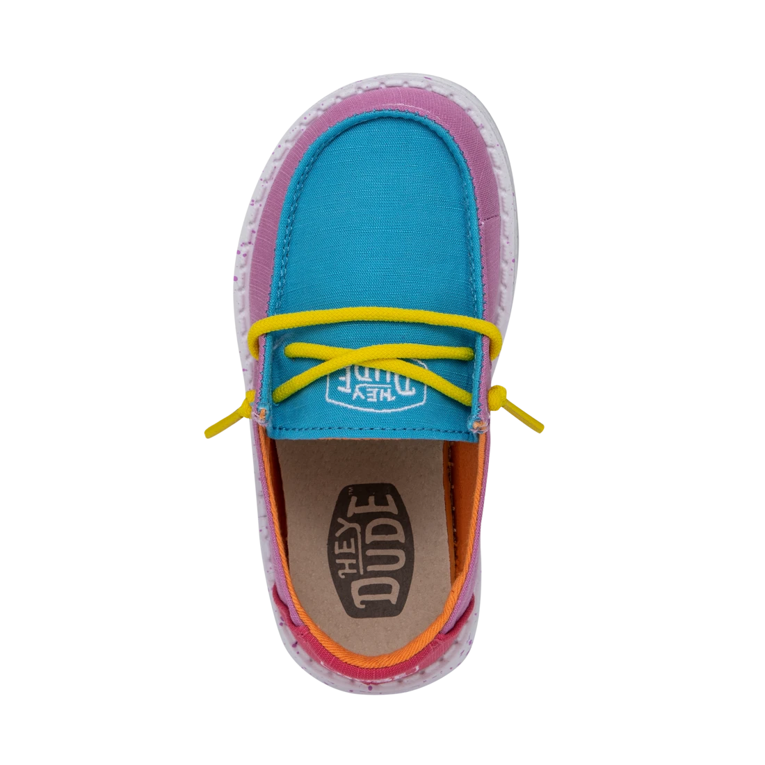 The Hey Dude Wendy Toddler Slub Canvas, Color Block, is the perfect shoe this summer for your little one. A fun bright color block design, brings fun and adventure no matter where the road takes them. Your little one will love all the colors and you will love the all day comfort and lightweight design.