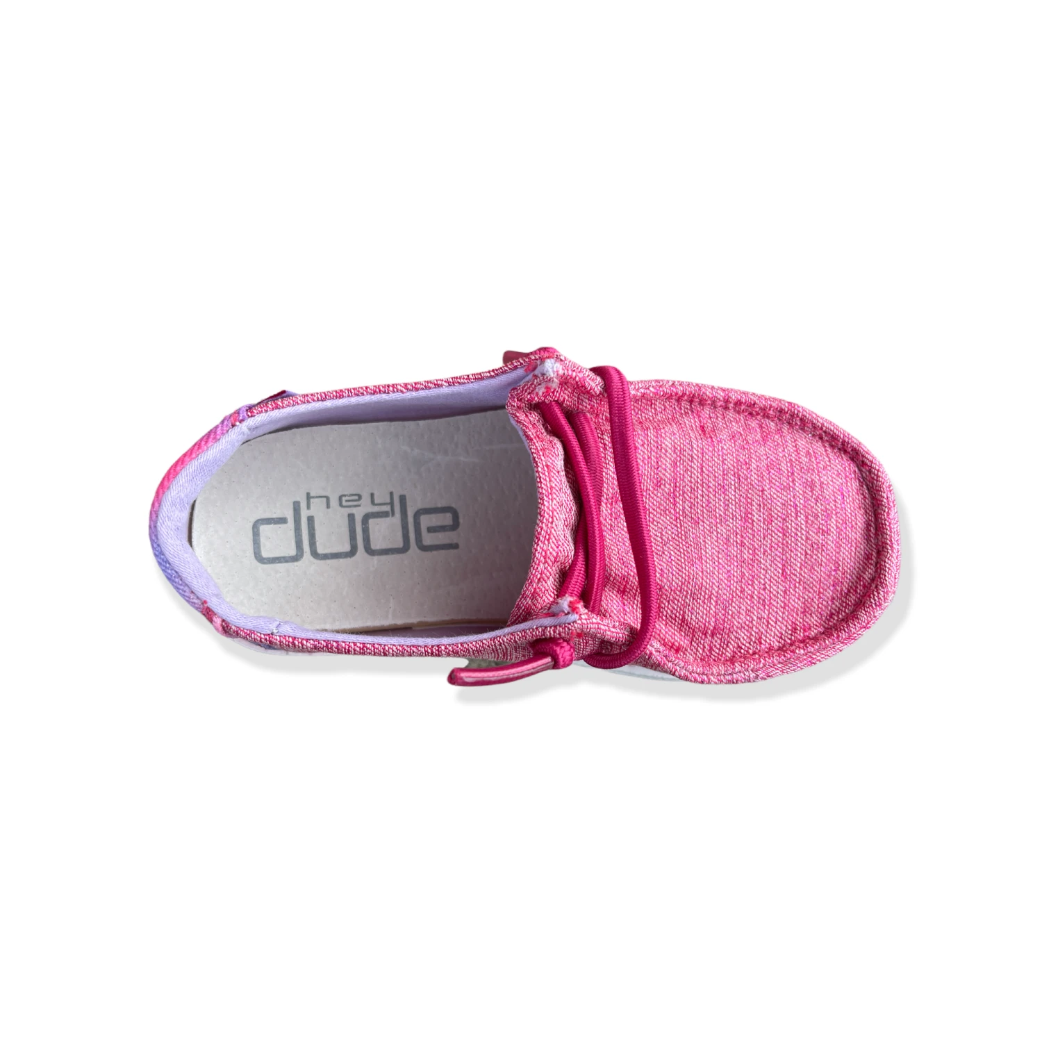 These new sparkle pink toddler hey dudes are all girl! These shoes are lightweight, comfortable, and perfect for her daily adventures.