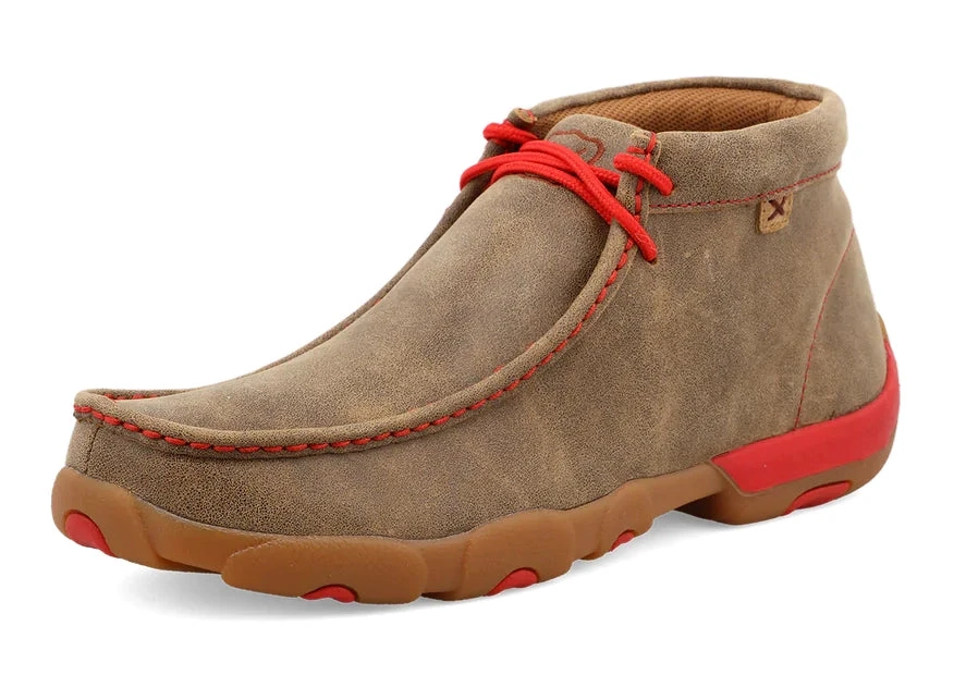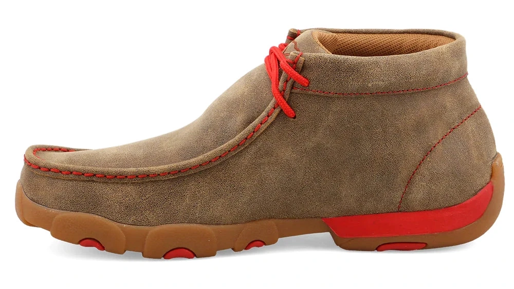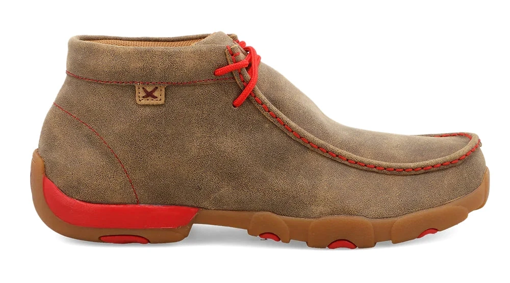 This Twisted X Men’s casual chukka driving moc is handcrafted in full-grain leather accented in red! The molded footbed, three-quarter length composite insole, and the Twisted X® driving moc outsole provides comfortable, and stylish ankle-high casual shoes.