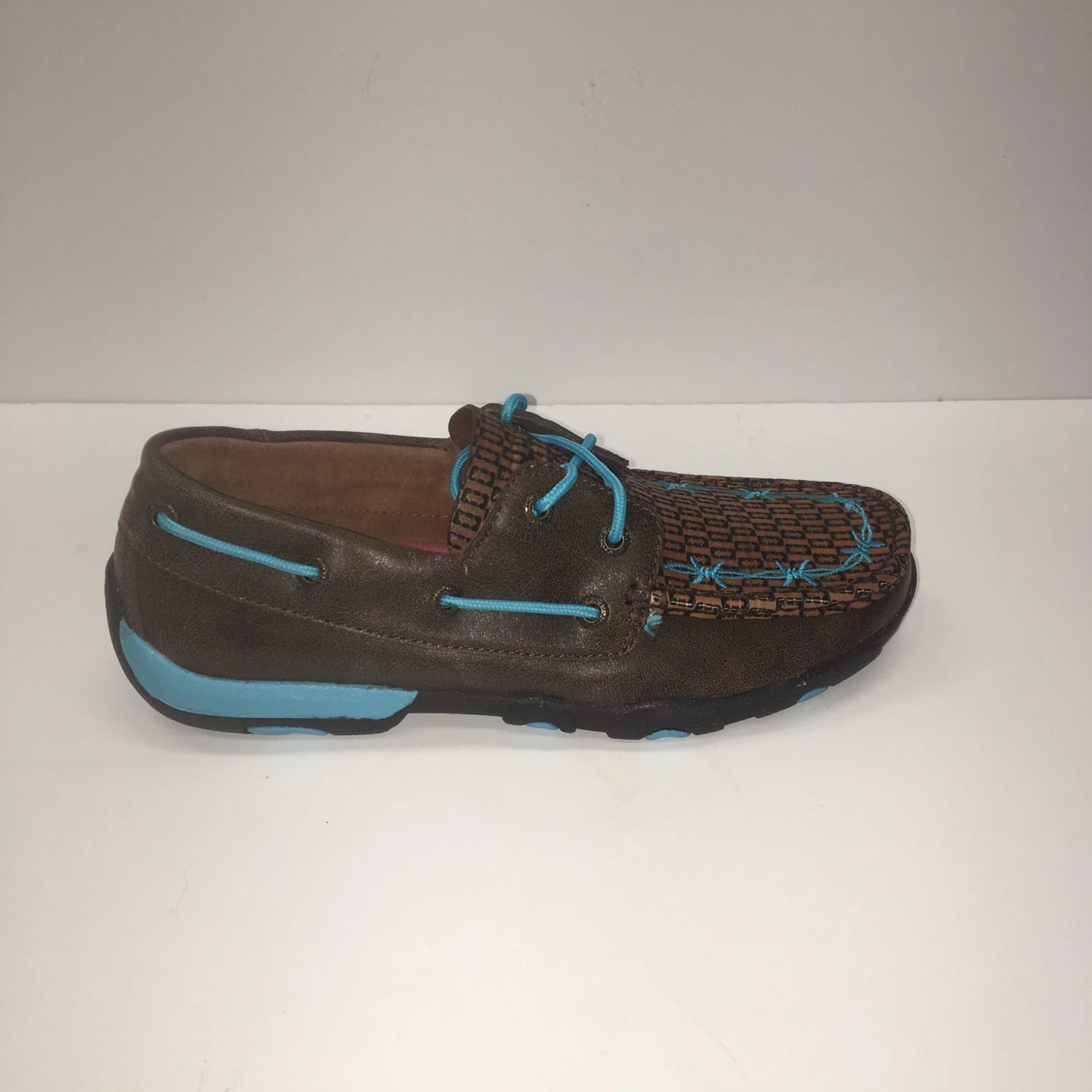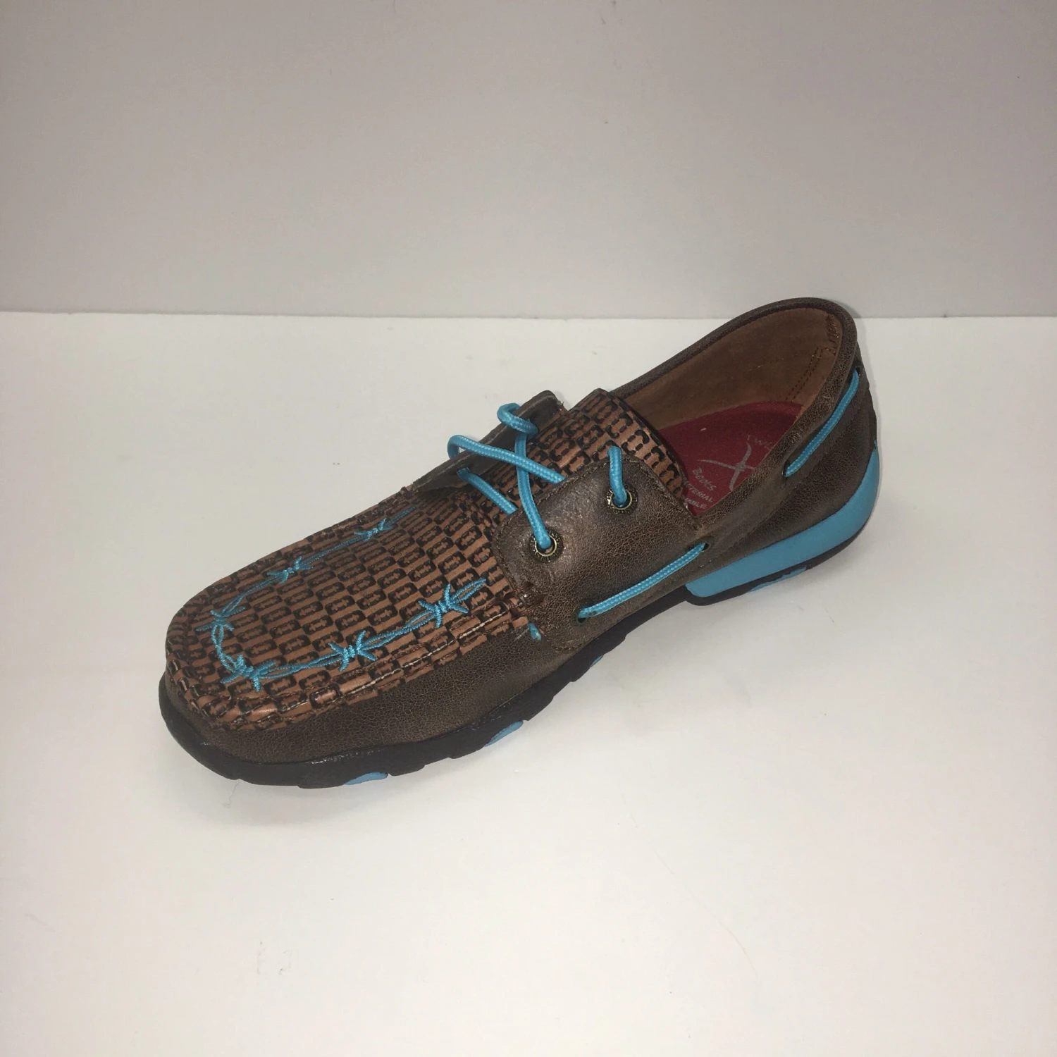 Check out these Western Edge Exclusive Driving Moc’s from Twisted X! They feature a basket weave stamped toe with a blue barbed wire design and lacing, you will only find this shoe at the Edge!