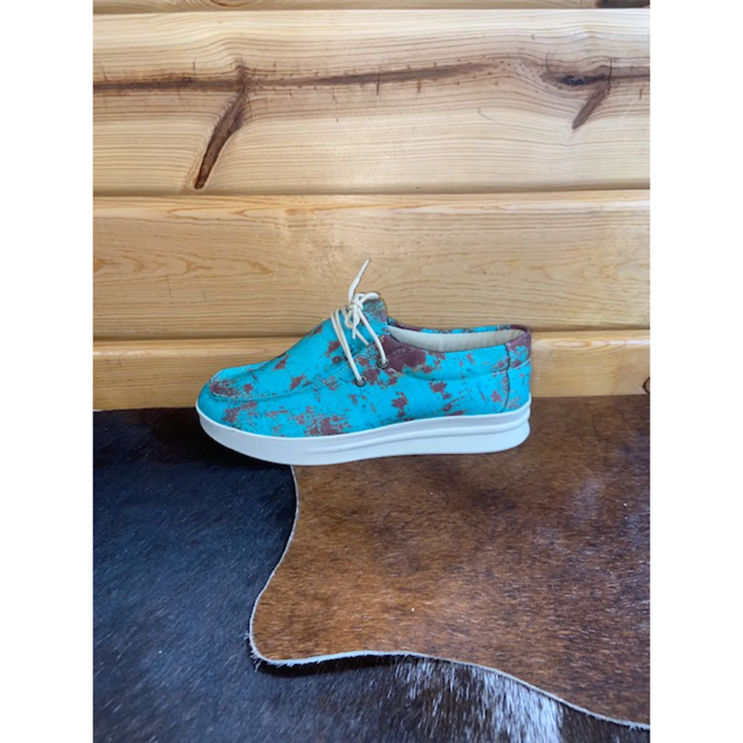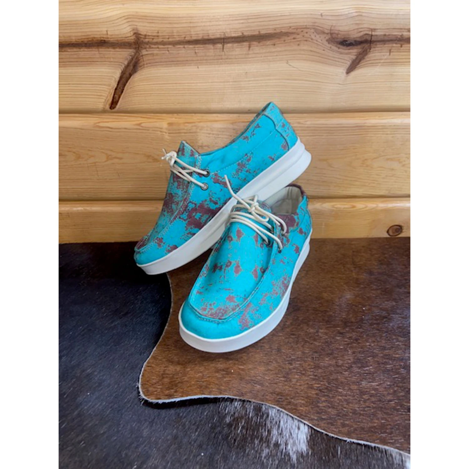 These rusted turquoise canvas shoes are both comfortable and bold.